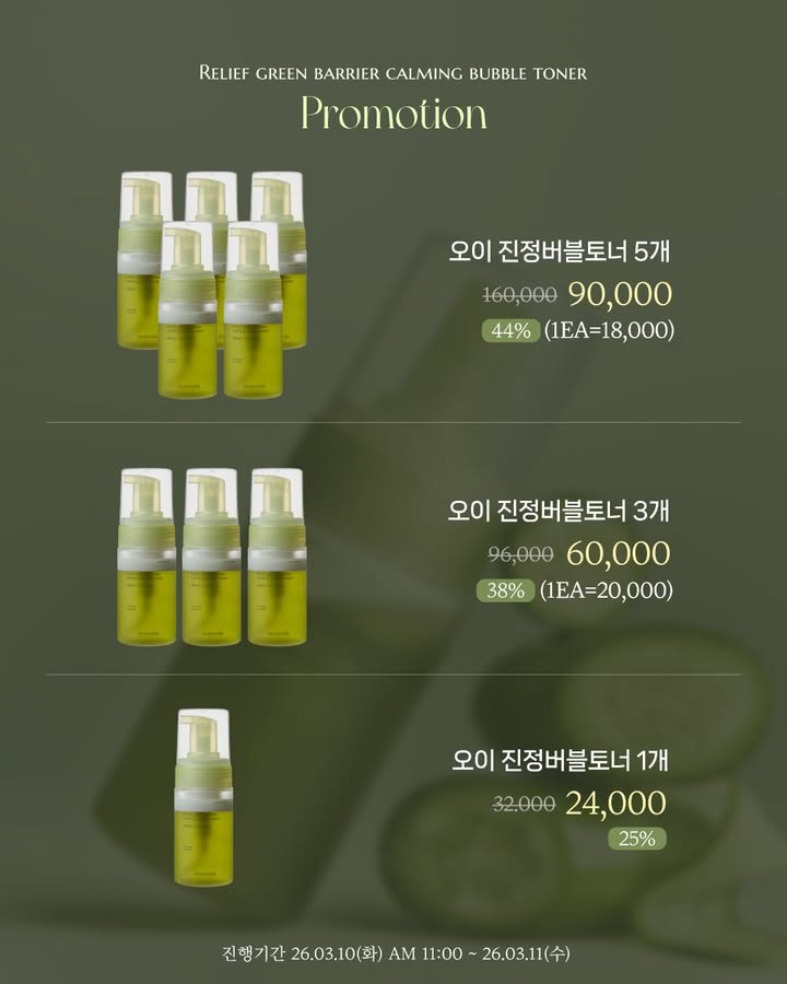 모어벨라 오이 진정버블토너 공구morebella_byul팔로워 13.3만|26일 전모어벨라 오이 진정버블토너종료뷰티 > 기초|3/10 (화) ~ 3/11 (수)AI가 정리한 정보예요. 실수가 있을 수 있어요원본 게시물인스타그램에서 보기#모어벨라#진정버블토너#스킨케어#스킨#토너출처 @morebella_byul구매하러 가기