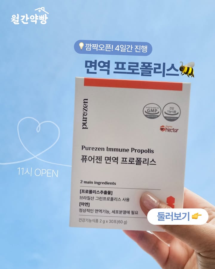 프로폴리스 공구supermom_yaksa팔로워 16.2만|약 1개월 전프로폴리스11일 후 오픈 예정식품 > 건강식품|5/1 (금) ~ 5/4 (월)AI가 정리한 정보예요. 실수가 있을 수 있어요원본 게시물인스타그램에서 보기#프로폴리스#건강식품#브라질산#플라보노이드출처 @supermom_yaksa구매하러 가기