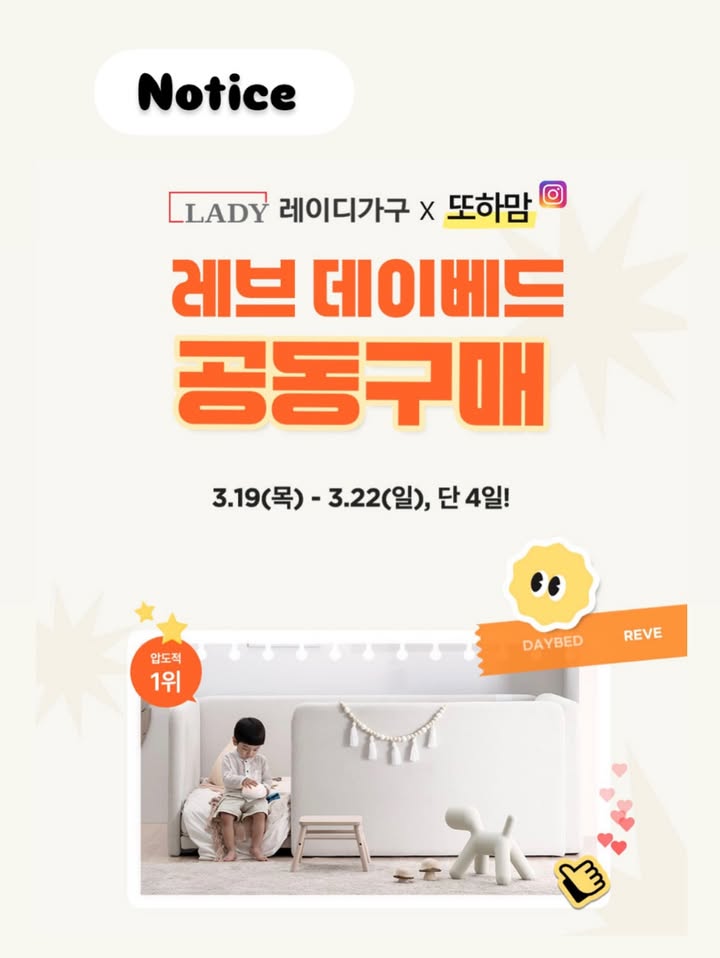 레브 데이베드 공구ddoa_mam팔로워 6.4만|약 1개월 전레브 데이베드종료인테리어 > 가구|3/19 (목) ~ 3/22 (일)AI가 정리한 정보예요. 실수가 있을 수 있어요원본 게시물인스타그램에서 보기#레브#데이베드#침대#안전가드#쿠폰혜택출처 @ddoa_mam구매하러 가기