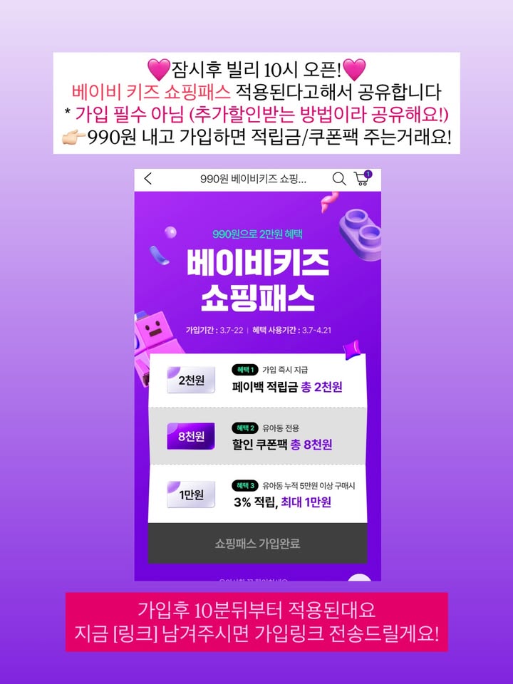 CJ온스타일 베이비쇼핑패스 공구ssugssug_baby팔로워 13.8만|약 1개월 전CJ온스타일 베이비쇼핑패스종료홈리빙 > 생활용품|3/20 (금) 오픈AI가 정리한 정보예요. 실수가 있을 수 있어요원본 게시물인스타그램에서 보기#CJ온스타일#베이비쇼핑패스#적립#쿠폰#프로모션출처 @ssugssug_baby구매하러 가기