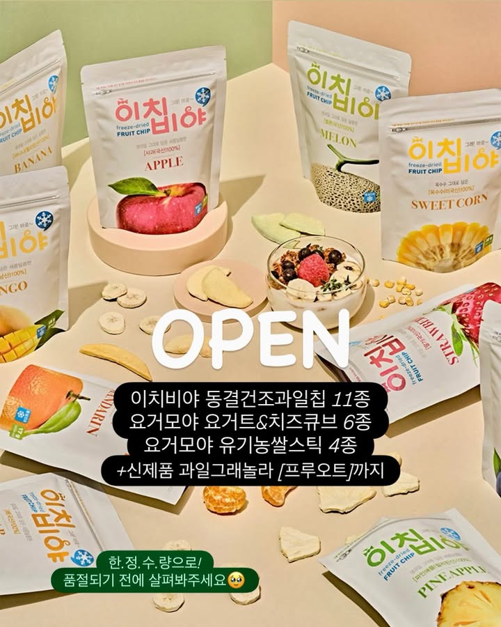 이치비야 동결건조과일칩 공구ddohuni_mom팔로워 12.9만|약 1개월 전이치비야 동결건조과일칩종료식품 > 간식/베이커리|3/20 (금) ~ 3/22 (일)AI가 정리한 정보예요. 실수가 있을 수 있어요원본 게시물인스타그램에서 보기#동결건조과일칩#이치비야#아기간식#프리미엄간식#첨가물제로출처 @ddohuni_mom구매하러 가기
