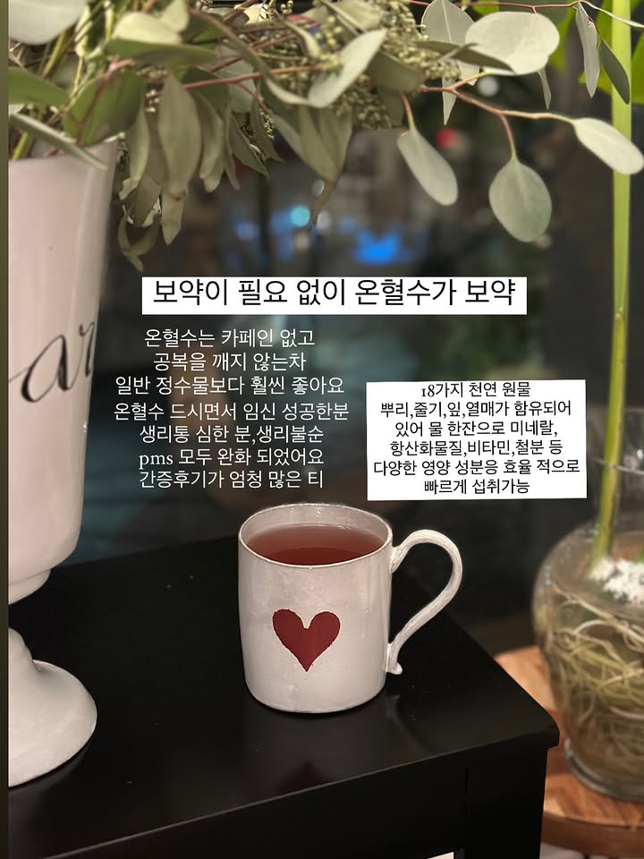 온혈수 공구sweetpekoe팔로워 6.6만|30일 전온혈수종료식품 > 건강식품|3/21 (토) 오픈AI가 정리한 정보예요. 실수가 있을 수 있어요원본 게시물인스타그램에서 보기#온혈수#음양탕#한방재료#체온#효능출처 @sweetpekoe구매하러 가기