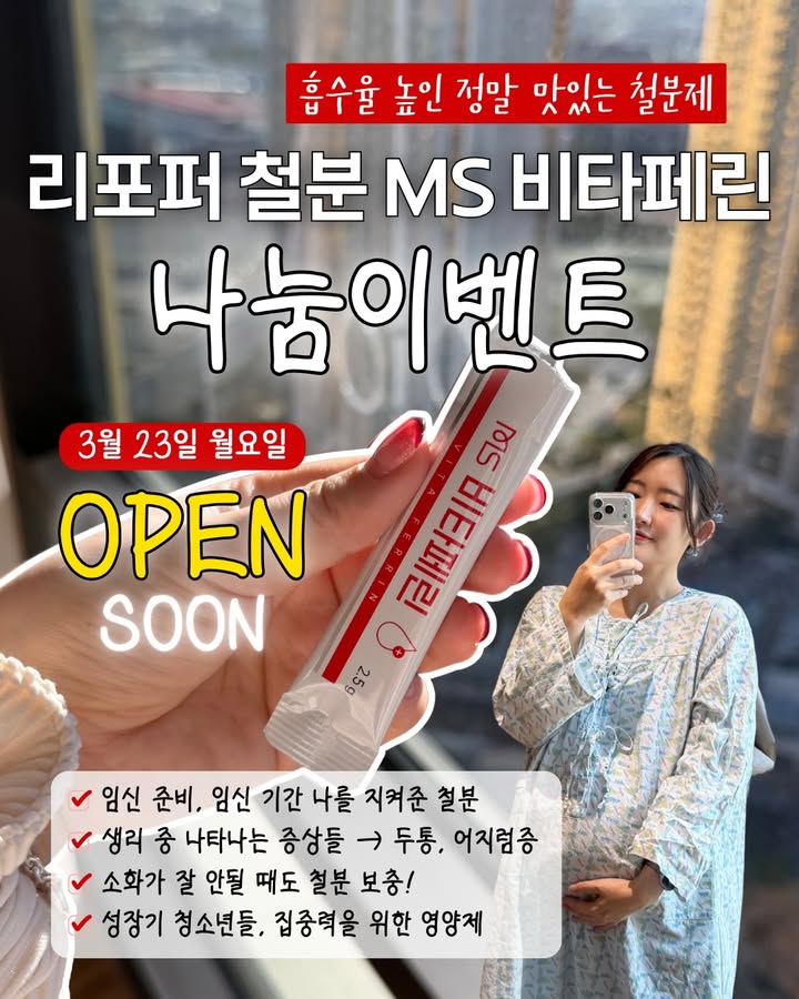 리포퍼 철분 MS 비타페린 공구eunha__yak팔로워 10.3만|29일 전리포퍼 철분 MS 비타페린종료식품 > 건강식품|3/23 (월) 오픈AI가 정리한 정보예요. 실수가 있을 수 있어요원본 게시물인스타그램에서 보기#철분#비타페린#여성건강#임신준비#영양제출처 @eunha__yak구매하러 가기