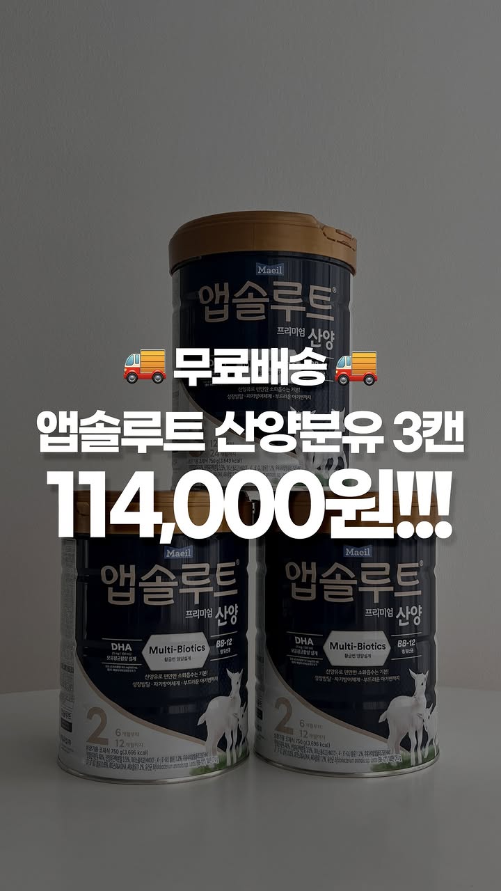 앱솔루트 플래티넘 산양 분유 공구lifegooditem팔로워 55.8만|28일 전앱솔루트 플래티넘 산양 분유종료3/23 (월) 오픈AI가 정리한 정보예요. 실수가 있을 수 있어요원본 게시물인스타그램에서 보기#매일유업#산양분유#프리미엄#유산균#쾌변루틴출처 @lifegooditem구매하러 가기