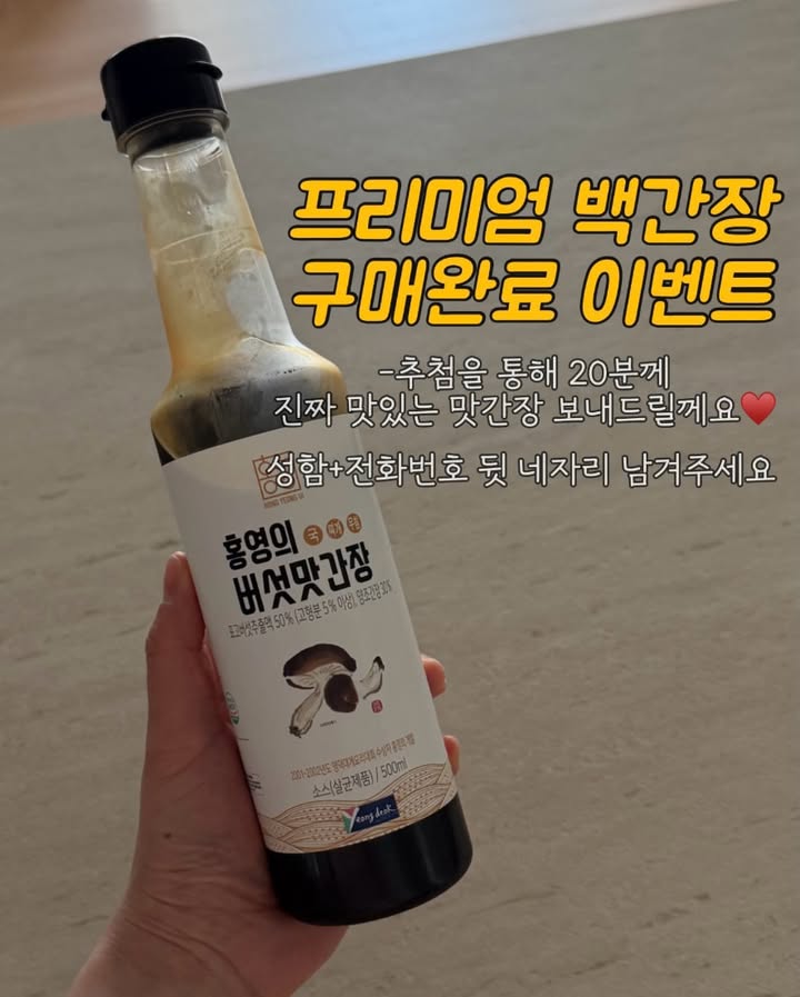 홍영 버섯 맛간장 공구2na2jun_mom.official팔로워 18.2만|28일 전홍영 버섯 맛간장종료식품 > 건강식품|3/23 (월) 오픈AI가 정리한 정보예요. 실수가 있을 수 있어요원본 게시물인스타그램에서 보기#홍영#맛간장#프리미엄#간장#요리출처 @2na2jun_mom.official구매하러 가기