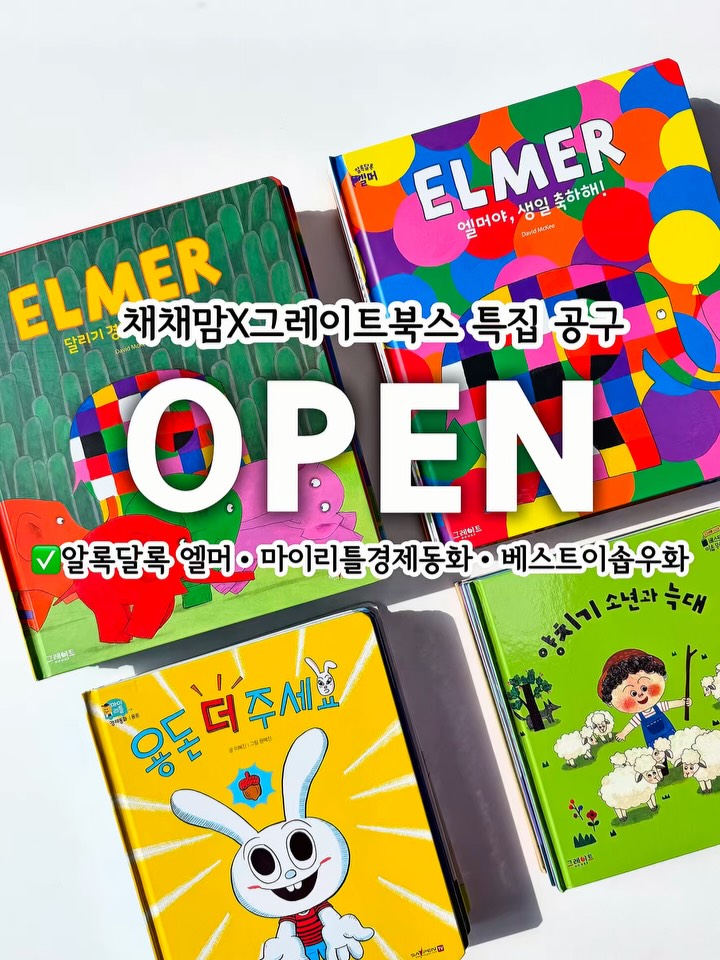 그레이트북스 알록달록 엘머 공구my__chaechae팔로워 6.5만|28일 전그레이트북스 알록달록 엘머종료키즈 > 교구/교육|3/23 (월) ~ 3/29 (일)AI가 정리한 정보예요. 실수가 있을 수 있어요원본 게시물인스타그램에서 보기#그레이트북스#알록달록엘머#경제동화#이솝우화#도서출처 @my__chaechae구매하러 가기