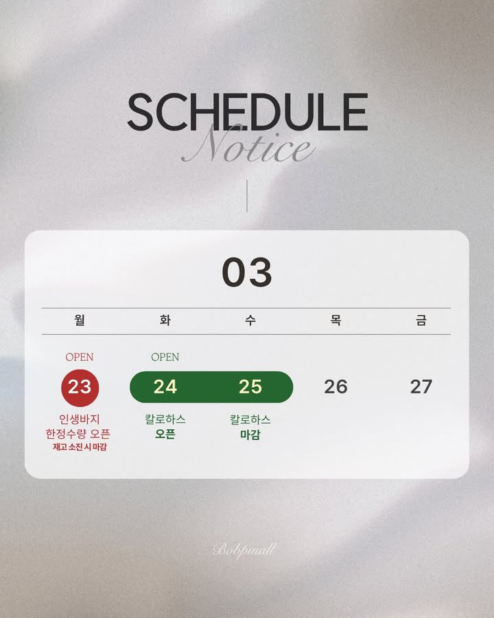 인생바지 외 1건 공구bop.mall팔로워 1.1만|27일 전공구 정보 (2건)인생바지종료패션 > 의류|3/23 (월) 오픈칼로하스종료패션 > 의류|3/24 (화) ~ 3/25 (수)AI가 정리한 정보예요. 실수가 있을 수 있어요원본 게시물인스타그램에서 보기#칼로하스#최저가#선착순이벤트#한정판매#구매기회#인생바지#구매추천#한정수량#라방#저녁시간출처 @bop.mall구매하러 가기