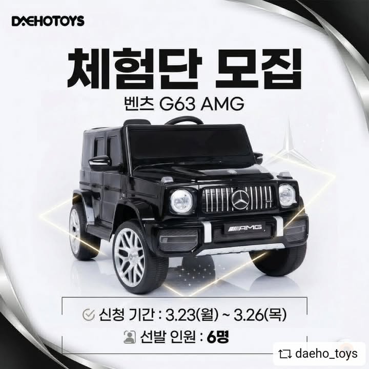 벤츠 지바겐 G63 AMG 유아전동차 공구woovely_jmk팔로워 7.4천|27일 전벤츠 지바겐 G63 AMG 유아전동차종료키즈 > 유모차/카시트|3/23 (월) ~ 3/26 (목)AI가 정리한 정보예요. 실수가 있을 수 있어요원본 게시물인스타그램에서 보기#체험단#전동차#벤츠전동차#유아전동차#육아그램출처 @woovely_jmk구매하러 가기