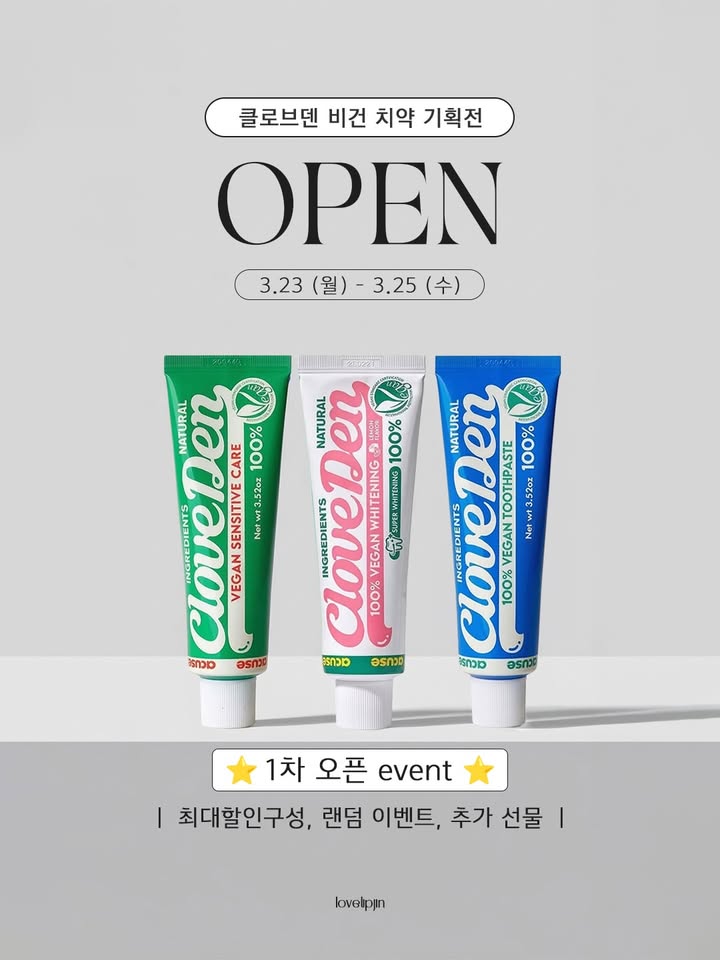 클로브덴 치약 공구lovelip_jin팔로워 8.5만|27일 전클로브덴 치약종료홈리빙 > 생활용품|3/23 (월) ~ 3/25 (수)AI가 정리한 정보예요. 실수가 있을 수 있어요원본 게시물인스타그램에서 보기#클로브덴#치약#가글#칫솔#자연유래출처 @lovelip_jin구매하러 가기