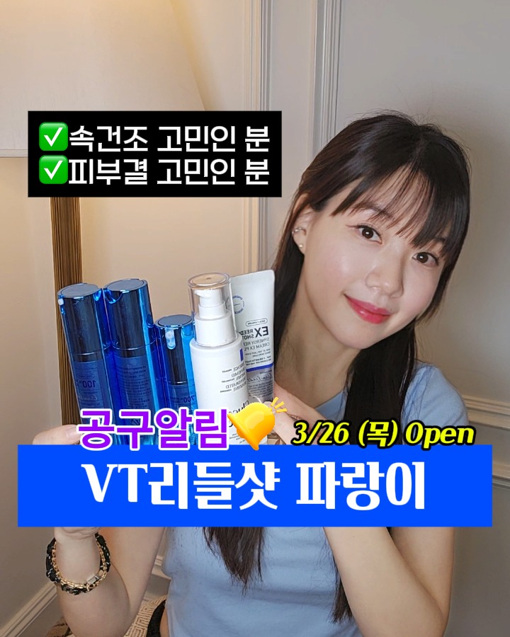 VT리들샷파랑이 공구lilly_yaksa팔로워 24.1만|27일 전VT리들샷파랑이종료뷰티 > 스킨케어|3/26 (목) 오픈AI가 정리한 정보예요. 실수가 있을 수 있어요원본 게시물인스타그램에서 보기#VT리들샷파랑이#보라SOS크림#스킨케어#수분충전#피부장벽출처 @lilly_yaksa구매하러 가기