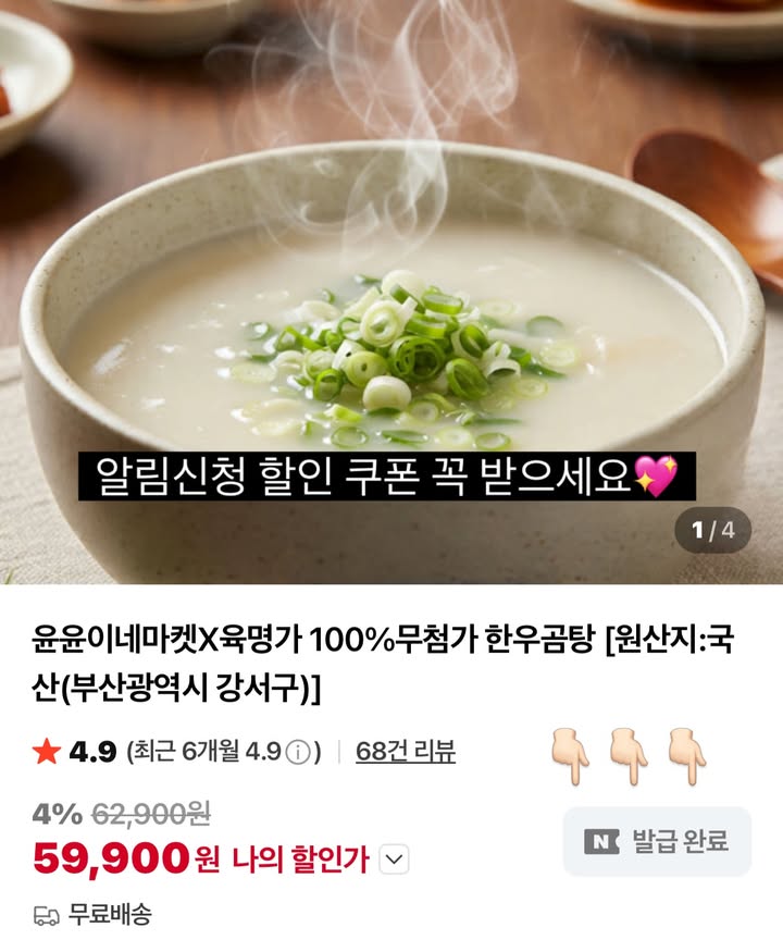육명가 한우곰탕 공구jhkgirl12팔로워 4만|27일 전육명가 한우곰탕종료식품 > 건강식품|3/24 (화) 오픈AI가 정리한 정보예요. 실수가 있을 수 있어요원본 게시물인스타그램에서 보기#육명가곰탕#한우곰탕#무료배송#고기#국물출처 @jhkgirl12구매하러 가기