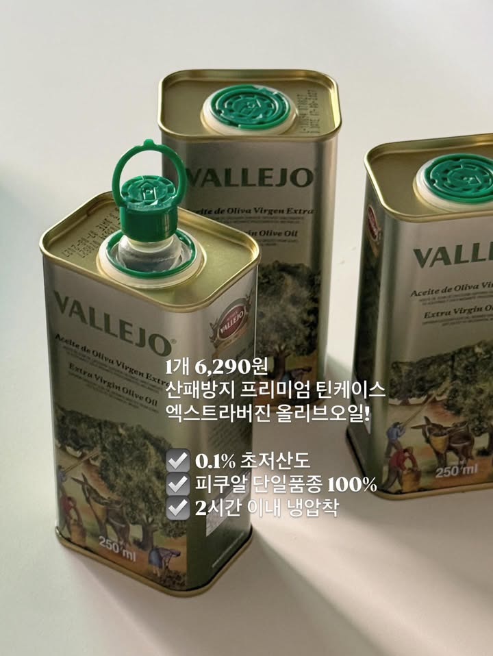 바예호 엑스트라 버진 올리브오일 틴케이스 공구_taemom팔로워 3만|26일 전바예호 엑스트라 버진 올리브오일 틴케이스종료식품 > 건강식품|3/24 (화) 오픈AI가 정리한 정보예요. 실수가 있을 수 있어요원본 게시물인스타그램에서 보기#올리브오일#엑스트라버진올리브오일#프리미엄#스페인산#식재료출처 @_taemom구매하러 가기