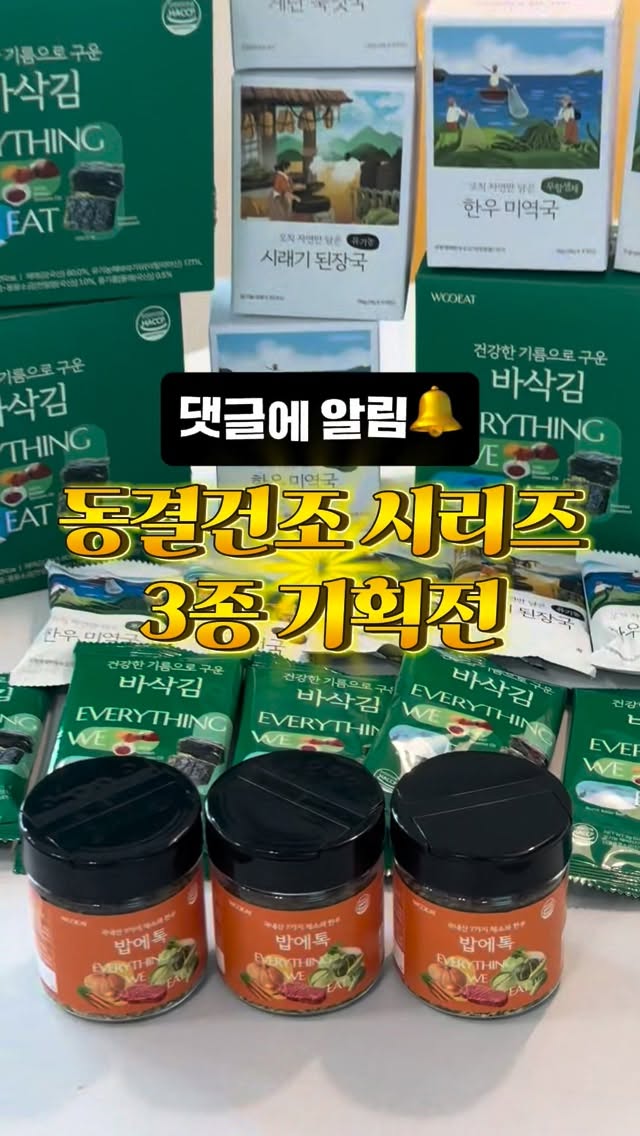 동결건조국 공구dami_721팔로워 10.2만|26일 전동결건조국종료식품 > 간편식/밀키트|3/26 (목) 오픈AI가 정리한 정보예요. 실수가 있을 수 있어요원본 게시물인스타그램에서 보기#동결건조국#후리가케#바삭김#국내산#저녁식사출처 @dami_721구매하러 가기