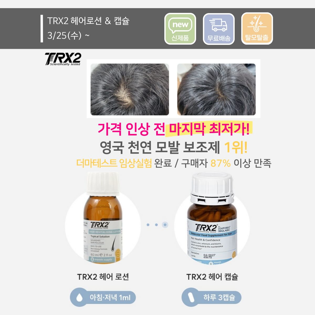 TRX2 헤어앰플 공구lupinus_may21팔로워 3.6만|25일 전TRX2 헤어앰플종료뷰티 > 스킨케어|3/25 (수) 오픈AI가 정리한 정보예요. 실수가 있을 수 있어요원본 게시물인스타그램에서 보기#TRX2헤어앰플#비건헤어앰플#탈모예방#두피케어#천연원료출처 @lupinus_may21구매하러 가기