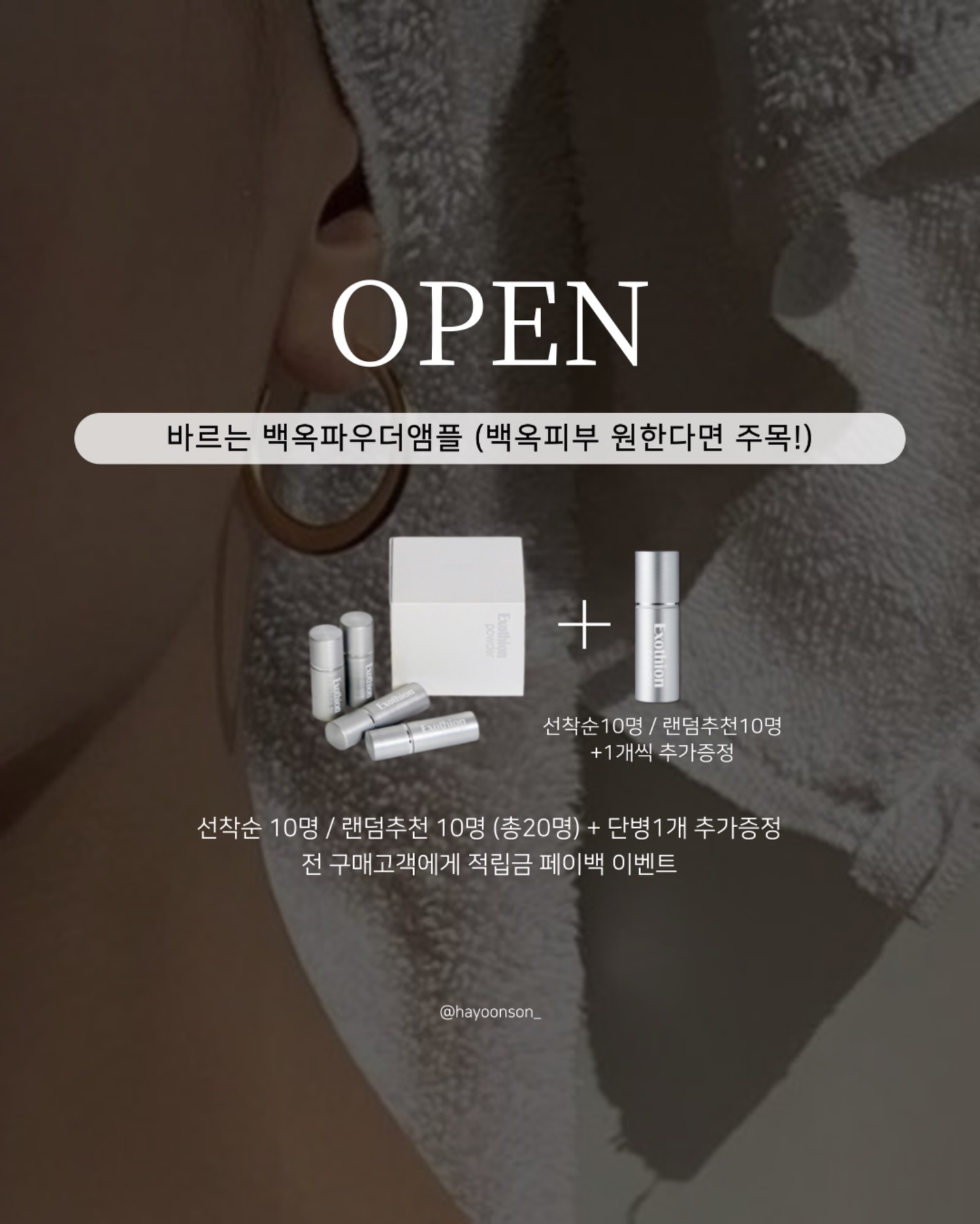 바비윤 쟁여템 공구hayoonson_팔로워 5.4만|24일 전바비윤 쟁여템종료뷰티 > 스킨케어|3/26 (목) 오픈AI가 정리한 정보예요. 실수가 있을 수 있어요원본 게시물인스타그램에서 보기#기미#글루타치온#미백앰플#잡티세럼#엑소티온파우더출처 @hayoonson_구매하러 가기