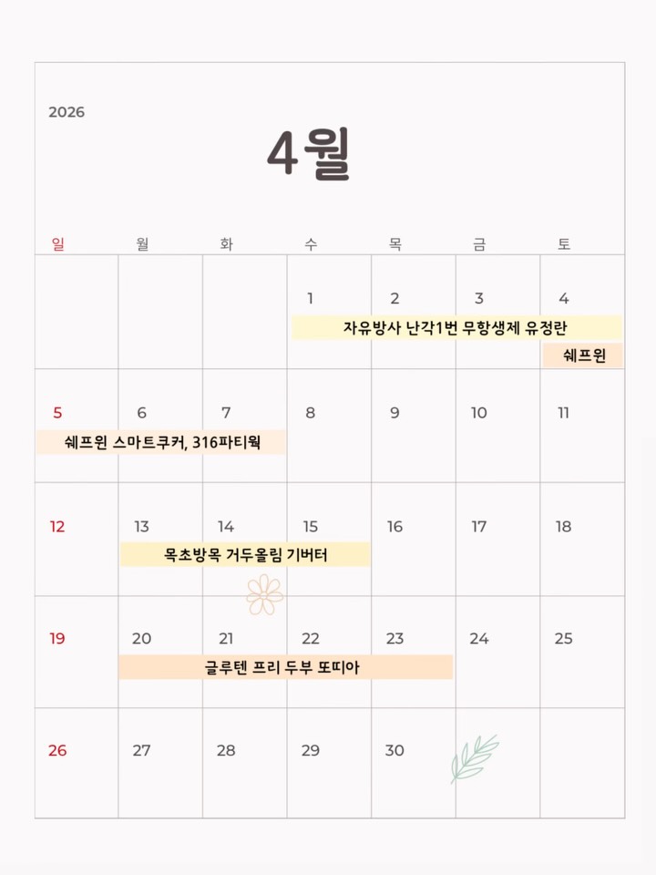 글루텐 프리 두부또띠아 외 3건 공구son2.mom팔로워 27만|22일 전공구 정보 (4건)글루텐 프리 두부또띠아내일 오픈 예정식품 > 간편식/밀키트|4/20 (월) ~ 4/23 (목)거두올림 기버터종료식품 > 유산균/비타민|4/13 (월) ~ 4/16 (목)쉐프윈 스마트쿠커5일 후 오픈 예정테크가전 > 주방가전|4/24 (금) ~ 4/7 (화)무항생제 유정란종료식품 > 신선식품|4/1 (수) ~ 4/4 (토)AI가 정리한 정보예요. 실수가 있을 수 있어요원본 게시물인스타그램에서 보기#글루텐프리#두부또띠아#거두올림#기버터#쉐프윈#스마트쿠커#316파티웍#무항생제#유정란#자유방사출처 @son2.mom구매하러 가기