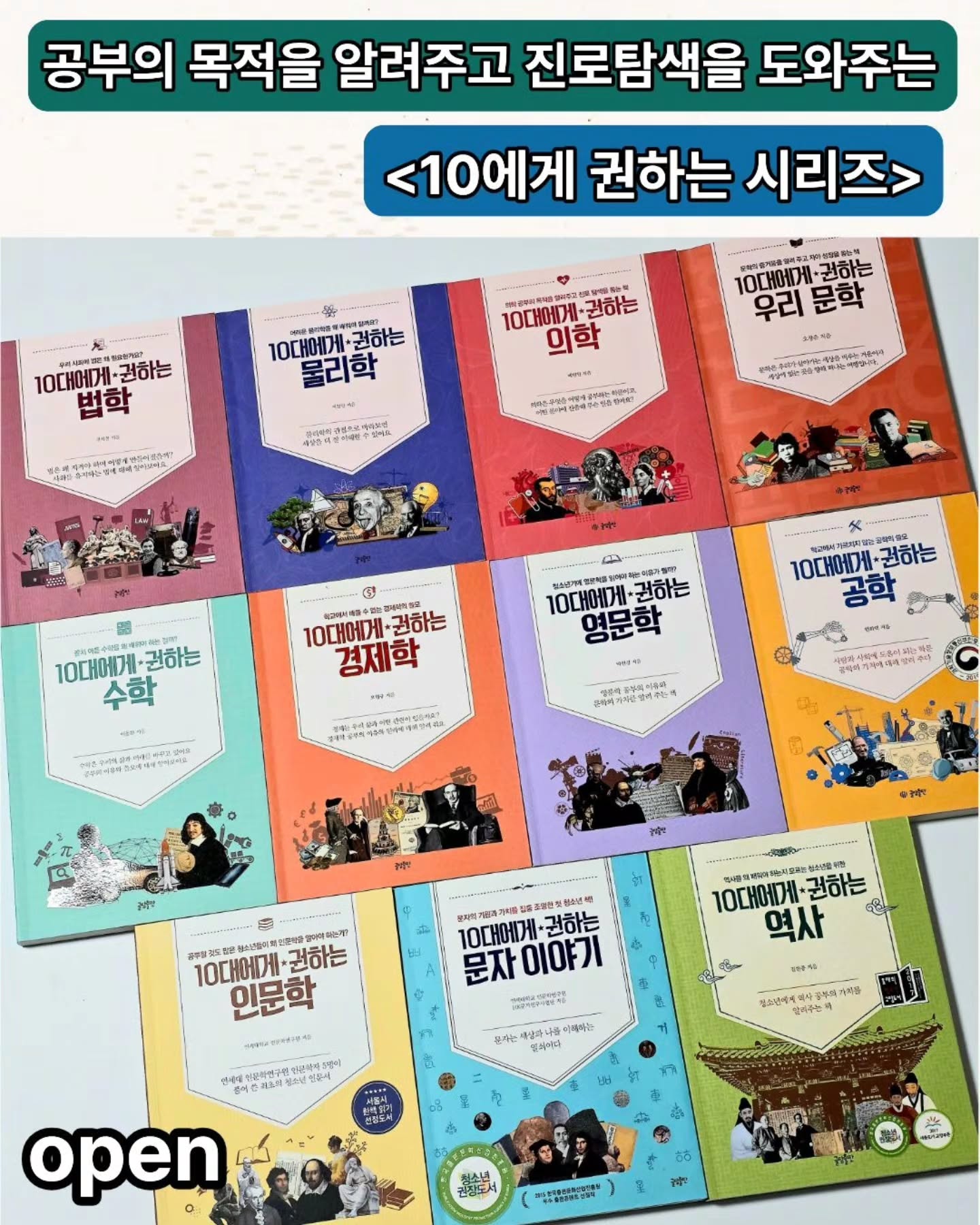 10대에게 권하는 시리즈 공구kyhjmd486팔로워 6.1만|24일 전10대에게 권하는 시리즈종료키즈 > 책육아|3/26 (목) 오픈AI가 정리한 정보예요. 실수가 있을 수 있어요원본 게시물인스타그램에서 보기#진로탐색#공부의목적#청소년도서#고교학점제#교육출처 @kyhjmd486구매하러 가기