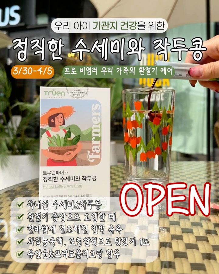 트루엔파머스 정직한 수세미와 작두콩 공구eunha__yak팔로워 10.3만|21일 전트루엔파머스 정직한 수세미와 작두콩종료식품 > 건강식품|3/30 (월) ~ 4/5 (일)AI가 정리한 정보예요. 실수가 있을 수 있어요원본 게시물인스타그램에서 보기#수세미작두콩#환절기#비염#건강#추위출처 @eunha__yak구매하러 가기