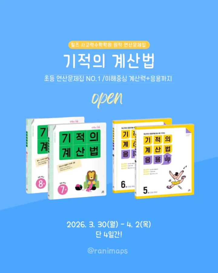 기적의 계산법 공구ranimaps팔로워 5.4만|21일 전기적의 계산법종료키즈 > 교구/교육|3/30 (월) ~ 4/2 (목)AI가 정리한 정보예요. 실수가 있을 수 있어요원본 게시물인스타그램에서 보기#초등수학#연산문제집#기적의계산법#학습#공구출처 @ranimaps구매하러 가기