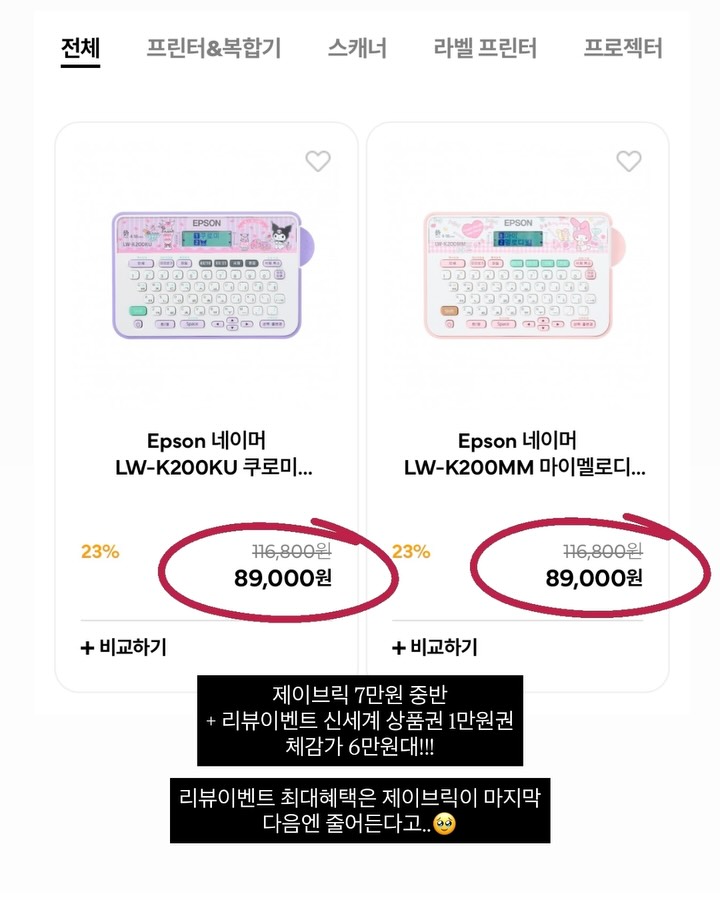 앱손 라벨프린터 공구jbric_팔로워 11.3만|20일 전앱손 라벨프린터종료테크가전 > 생활가전|3/30 (월) ~ 3/31 (화)AI가 정리한 정보예요. 실수가 있을 수 있어요원본 게시물인스타그램에서 보기#앱손#라벨프린터#라벨기#쿠로미#마이멜로디출처 @jbric_구매하러 가기