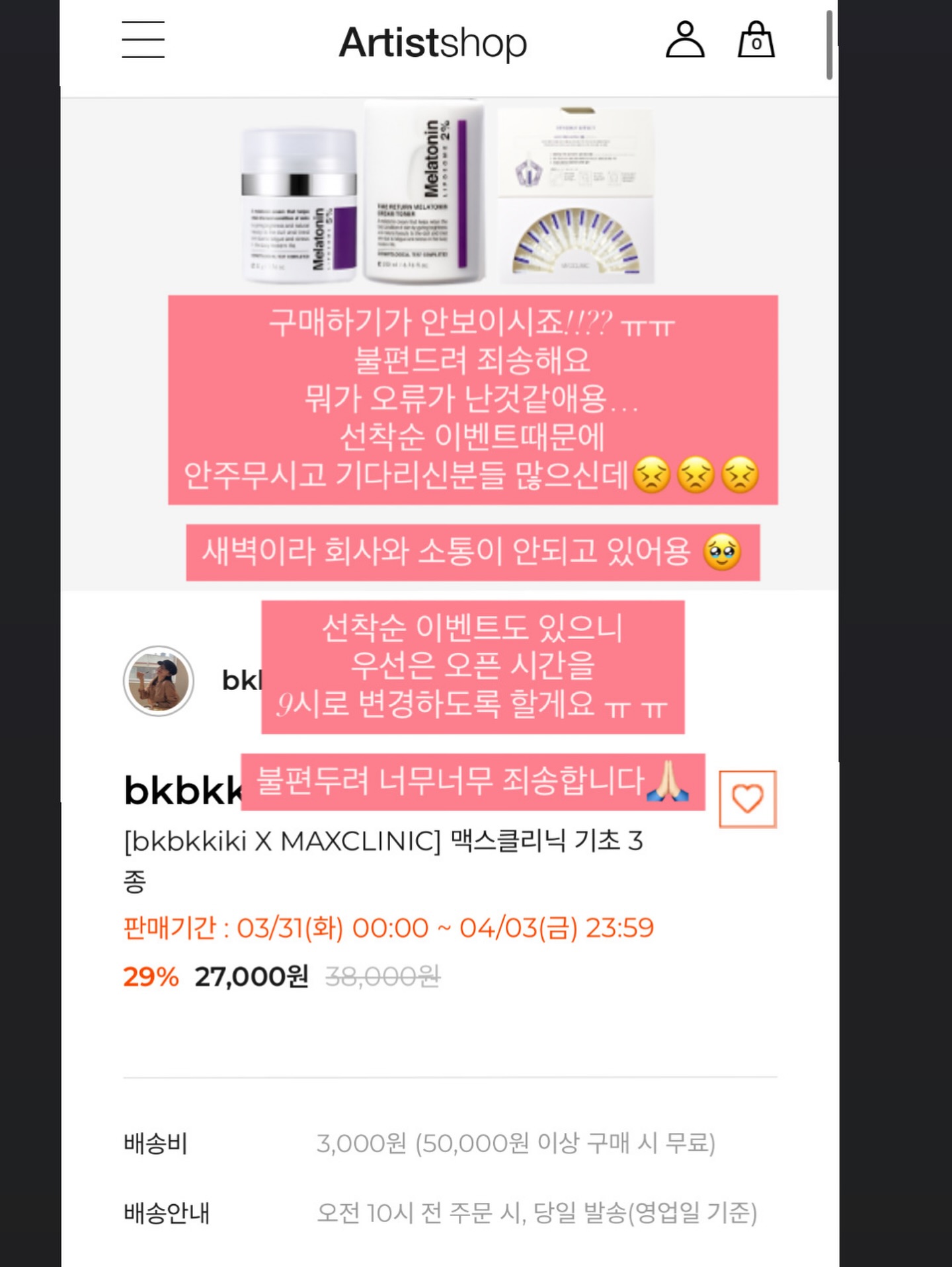 멜라토닌 기초3종 공구bkbkkiki팔로워 4.7만|약 20시간 전멜라토닌 기초3종내일 오픈 예정뷰티 > 기초|4/1 (수) 오픈AI가 정리한 정보예요. 실수가 있을 수 있어요원본 게시물인스타그램에서 보기#멜라토닌#기초화장품#스킨케어출처 @bkbkkiki구매하러 가기