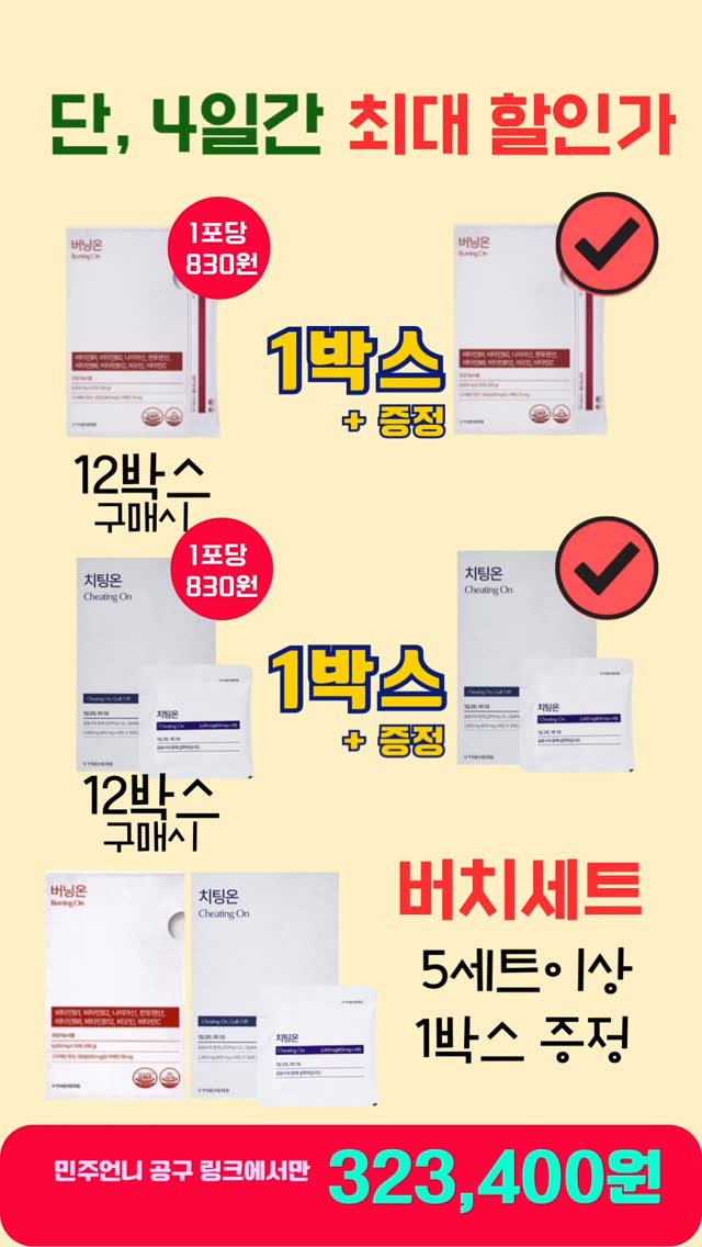버닝온 또는 치팅온 공구_blanc_beauty팔로워 1.5만|1일 전버닝온 또는 치팅온2일 전 오픈식품 > 건강식품|3/29 (일) 오픈AI가 정리한 정보예요. 실수가 있을 수 있어요원본 게시물인스타그램에서 보기#버닝온#치팅온#다이어트#건강#홈트출처 @_blanc_beauty구매하러 가기