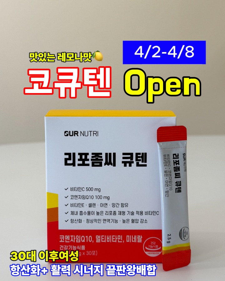 레모나맛 코큐텐+리포좀비타민C 공구lilly_yaksa팔로워 23.8만|약 4시간 전레모나맛 코큐텐+리포좀비타민C오늘 오픈식품 > 건강식품|4/2 (목) ~ 4/8 (수)AI가 정리한 정보예요. 실수가 있을 수 있어요원본 게시물인스타그램에서 보기#레모나맛#코큐텐#리포좀비타민C#공동구매#항산화네트워크출처 @lilly_yaksa구매하러 가기