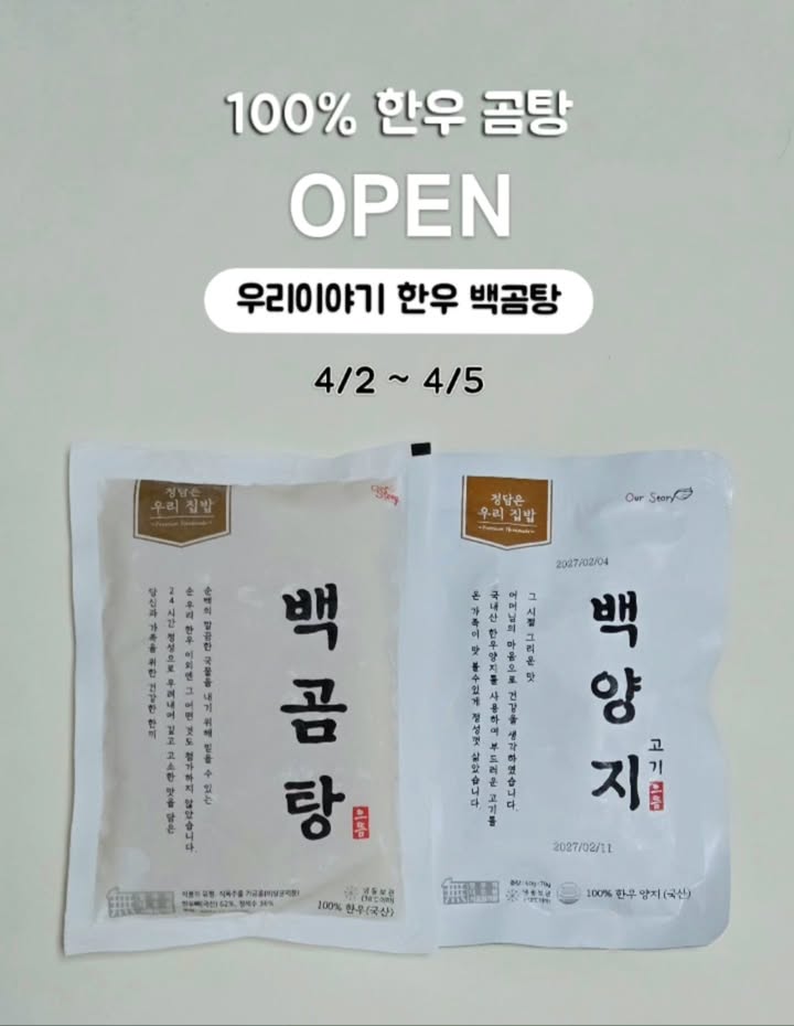 우리이야기 한우 백곰탕 공구juney.s2팔로워 1.3천|24일 전우리이야기 한우 백곰탕종료식품 > 간편식/밀키트|4/2 (목) ~ 4/5 (일)AI가 정리한 정보예요. 실수가 있을 수 있어요원본 게시물인스타그램에서 보기#백곰탕#곰탕공구#아기곰탕#한우곰탕출처 @juney.s2구매하러 가기