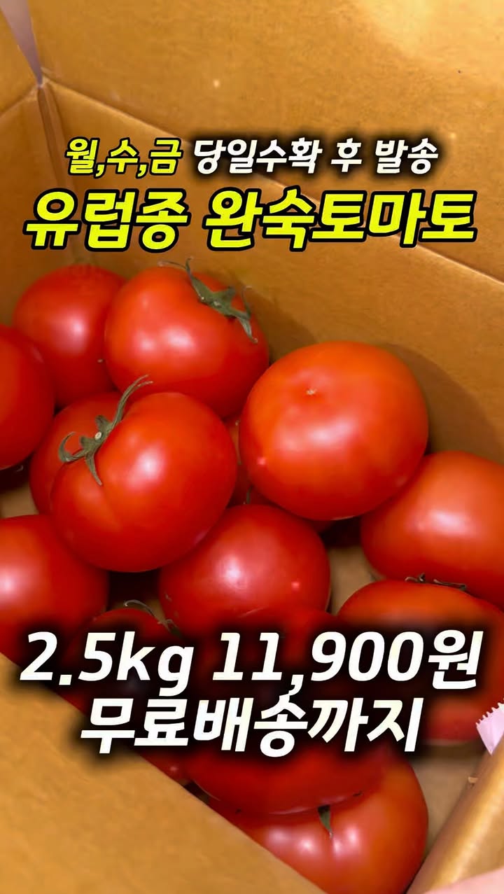 유럽종 완숙토마토 공구fruitggun팔로워 5.6만|22일 전유럽종 완숙토마토종료식품 > 신선식품|4/2 (목) 오픈AI가 정리한 정보예요. 실수가 있을 수 있어요원본 게시물인스타그램에서 보기#유럽종#완숙토마토#과일꾼출처 @fruitggun구매하러 가기