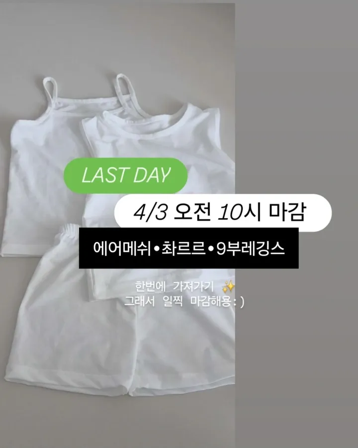 에끌 나시 & 속바지 공구__with_suha팔로워 1.4만|2일 전에끌 나시 & 속바지종료패션 > 의류|4/2 (목) ~ 4/3 (금)AI가 정리한 정보예요. 실수가 있을 수 있어요원본 게시물인스타그램에서 보기#에끌#나시#속바지#아동의류#여름의류출처 @__with_suha구매하러 가기