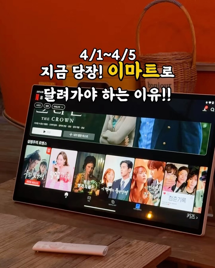 Great 포터블 스크린 공구suntg0803팔로워 10.5만|17일 전Great 포터블 스크린종료테크가전 > 취미/디지털기기|4/1 (수) ~ 4/5 (일)AI가 정리한 정보예요. 실수가 있을 수 있어요원본 게시물인스타그램에서 보기#Great포터블스크린#이동식TV#이마트#할인#스마트디바이스출처 @suntg0803구매하러 가기