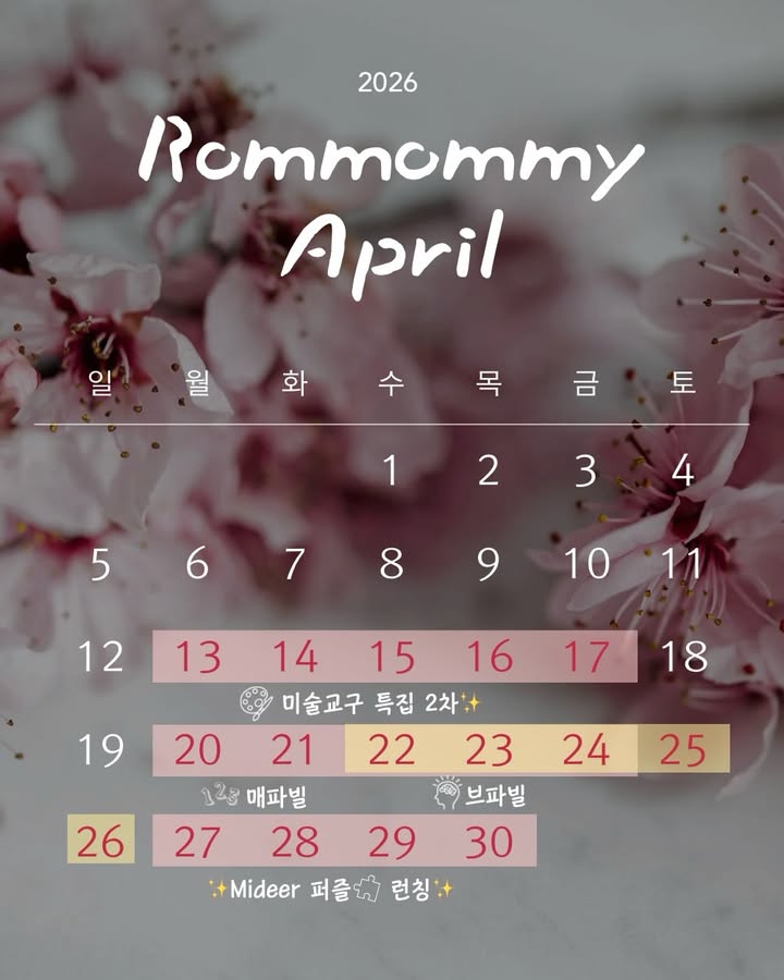 미술 교구 특집 2차 외 3건 공구rom_mommy팔로워 8.3만|1일 전공구 정보 (4건)미술 교구 특집 2차9일 후 오픈 예정키즈 > 교구 교육용품|4/13 (월) ~ 4/17 (금)매파빌16일 후 오픈 예정키즈 > 교구 교육용품|4/20 (월) 오픈브파빌 & 홈스콜라 교구18일 후 오픈 예정키즈 > 교구 교육용품|4/22 (수) 오픈Mideer 퍼즐 인스타 런칭23일 후 오픈 예정키즈 > 완구놀이|4/27 (월) ~ 5/1 (금)AI가 정리한 정보예요. 실수가 있을 수 있어요원본 게시물인스타그램에서 보기#미술교구#롬마미#공구#매파빌#브파빌#롯마미#Mideer#퍼즐출처 @rom_mommy구매하러 가기