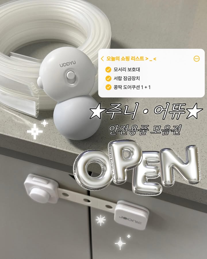 주니 모서리 보호대 & 서랍 잠금장치 & 어뜌 콩딱 도어쿠션 공구xoxo.siwoo팔로워 1.8만|1일 전주니 모서리 보호대 & 서랍 잠금장치 & 어뜌 콩딱 도어쿠션2일 전 오픈키즈 > 육아용품|4/2 (목) ~ 4/5 (일)AI가 정리한 정보예요. 실수가 있을 수 있어요원본 게시물인스타그램에서 보기#안전용품#아기안전용품#모서리보호대#서랍잠금장치#도어쿠션출처 @xoxo.siwoo구매하러 가기