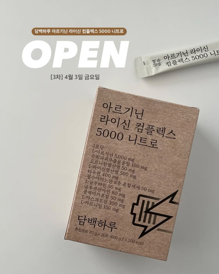 담백하루 아르기닌 라이신 컴플렉스 5000 니트로 공구woori_yaksa팔로워 5.2만|약 19시간 전담백하루 아르기닌 라이신 컴플렉스 5000 니트로어제 오픈식품 > 건강식품|4/3 (금) ~ 4/9 (목)AI가 정리한 정보예요. 실수가 있을 수 있어요원본 게시물인스타그램에서 보기#아르기닌#라이신#컴플렉스#우리약사#헬스출처 @woori_yaksa구매하러 가기