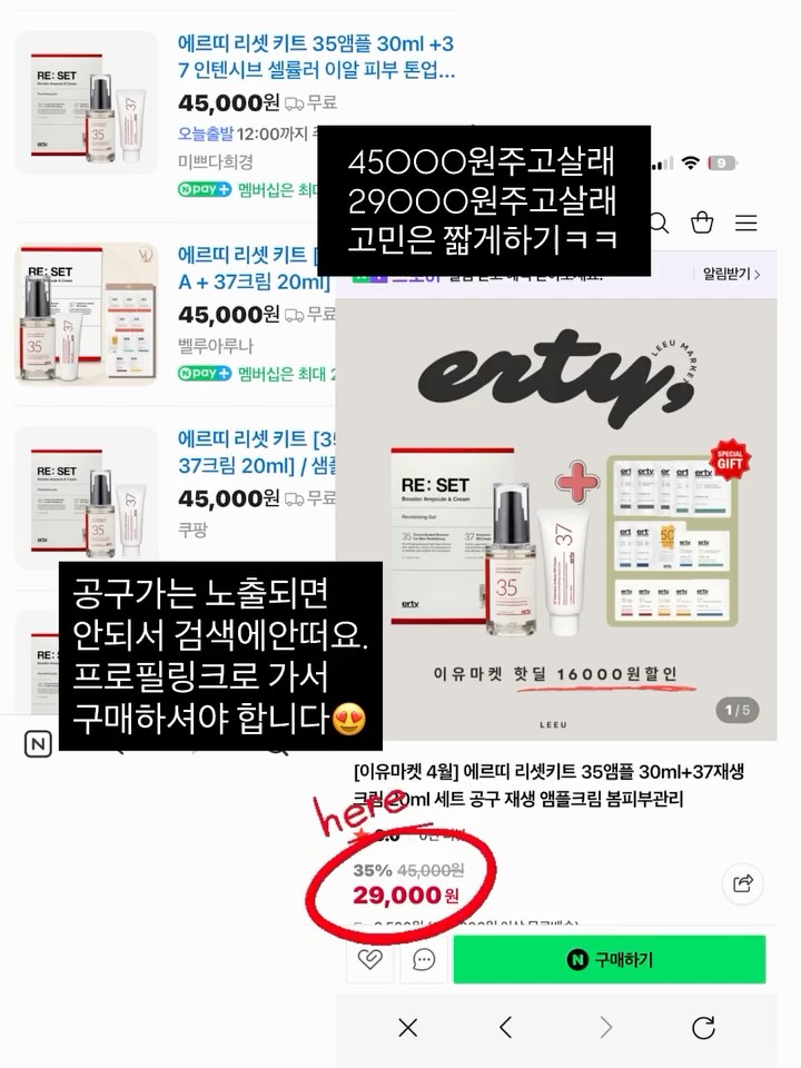 에르띠 리셋키트 공구mocca_look팔로워 1.4만|약 23시간 전에르띠 리셋키트어제 오픈뷰티 > 기초|4/3 (금) 오픈AI가 정리한 정보예요. 실수가 있을 수 있어요원본 게시물인스타그램에서 보기#에르띠#리셋키트#부스터앰플#재생크림#피부관리출처 @mocca_look구매하러 가기
