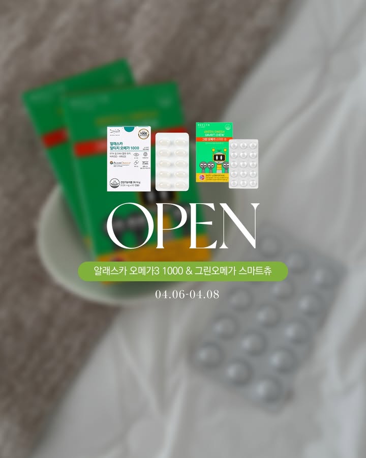 알래스카 오메가3 & 그린오메가 스마트츄 공구sani_and_haeng팔로워 21만|1일 전알래스카 오메가3 & 그린오메가 스마트츄어제 오픈식품 > 건강식품|4/6 (월) 오픈AI가 정리한 정보예요. 실수가 있을 수 있어요원본 게시물인스타그램에서 보기#영양제#건강식품#아이영양제#선착순이벤트#오메가3출처 @sani_and_haeng구매하러 가기