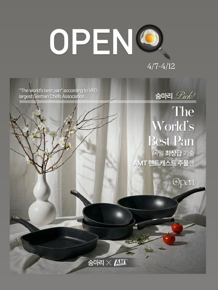 AMT 주물팬 공구soom_mari팔로워 8.7만|약 6시간 전AMT 주물팬오늘 오픈홈리빙 > 주방용품|4/7 (화) ~ 4/12 (일)AI가 정리한 정보예요. 실수가 있을 수 있어요원본 게시물인스타그램에서 보기#공구#주물팬#에바솔로#조리도구#AMT주물팬출처 @soom_mari구매하러 가기