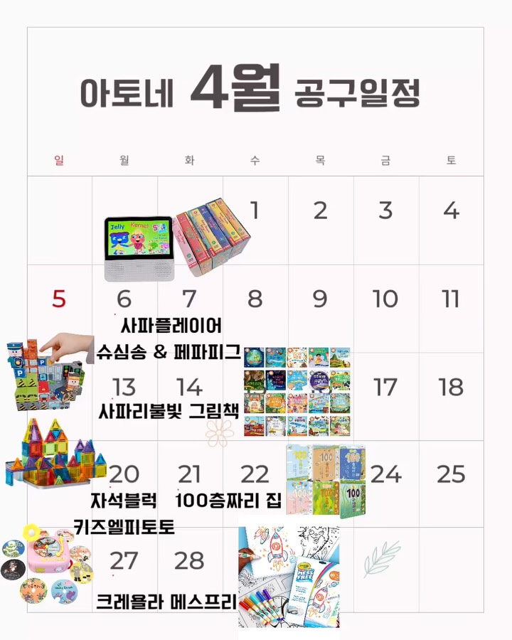 사파 플레이어 외 2건 공구ato._.hi팔로워 1.2만|약 13시간 전공구 정보 (3건)사파 플레이어어제 오픈키즈 > 완구놀이|4/7 (화) 오픈페파피그어제 오픈키즈 > 완구놀이|4/7 (화) 오픈슈퍼심플송어제 오픈키즈 > 완구놀이|4/7 (화) 오픈AI가 정리한 정보예요. 실수가 있을 수 있어요원본 게시물인스타그램에서 보기#장난감#놀이배움#영어교육#어린이선물#사파플레이어#페파피그#슈퍼심플송출처 @ato._.hi구매하러 가기