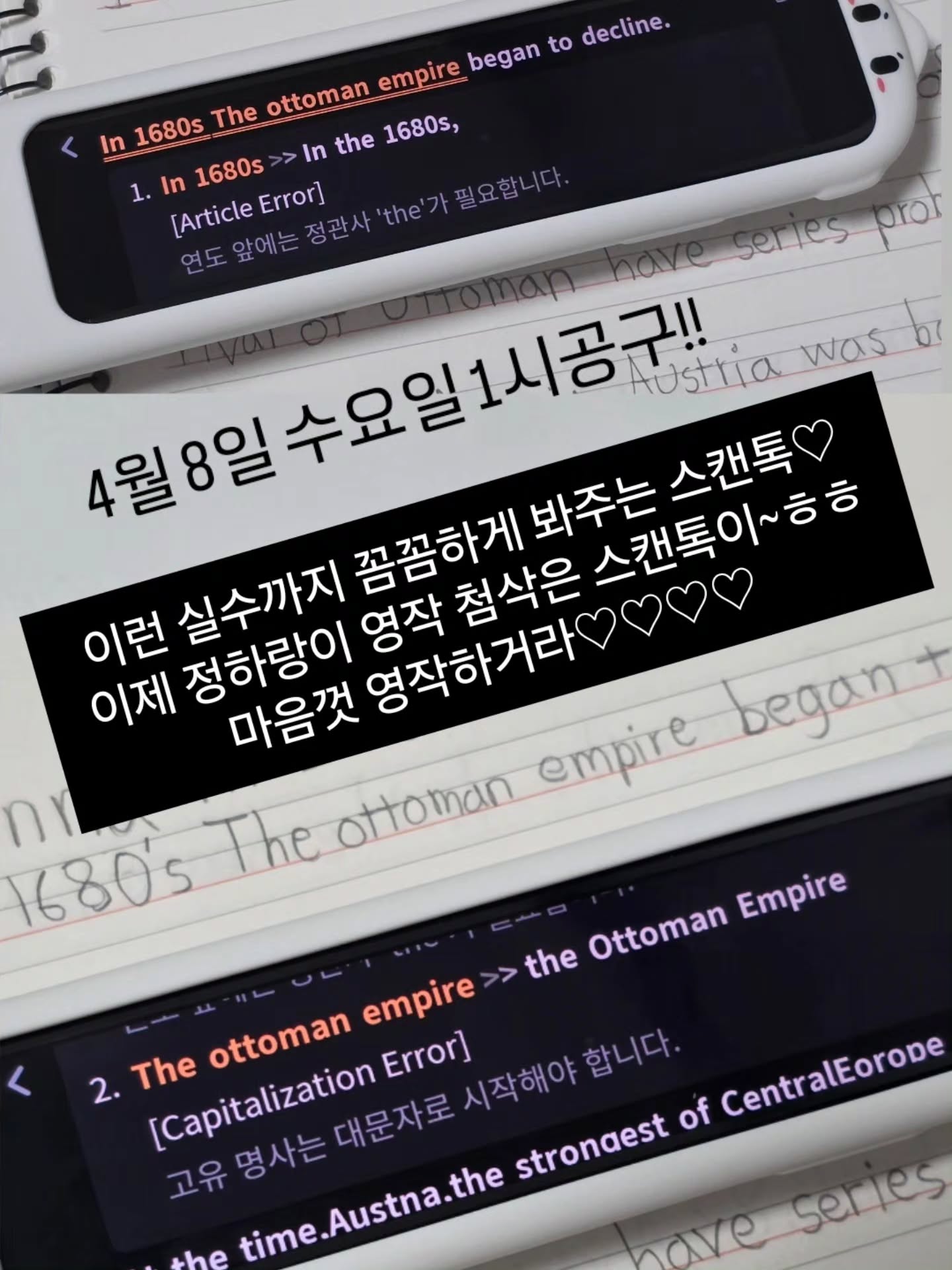 스캔톡 P30 공구kyhjmd486팔로워 6만|약 13시간 전스캔톡 P30오늘 13시 오픈테크가전 > 생활가전|4/8 (수) ~ 4/24 (금)AI가 정리한 정보예요. 실수가 있을 수 있어요원본 게시물인스타그램에서 보기#영어#영작#문법교정#학습도구#AI튜터출처 @kyhjmd486구매하러 가기