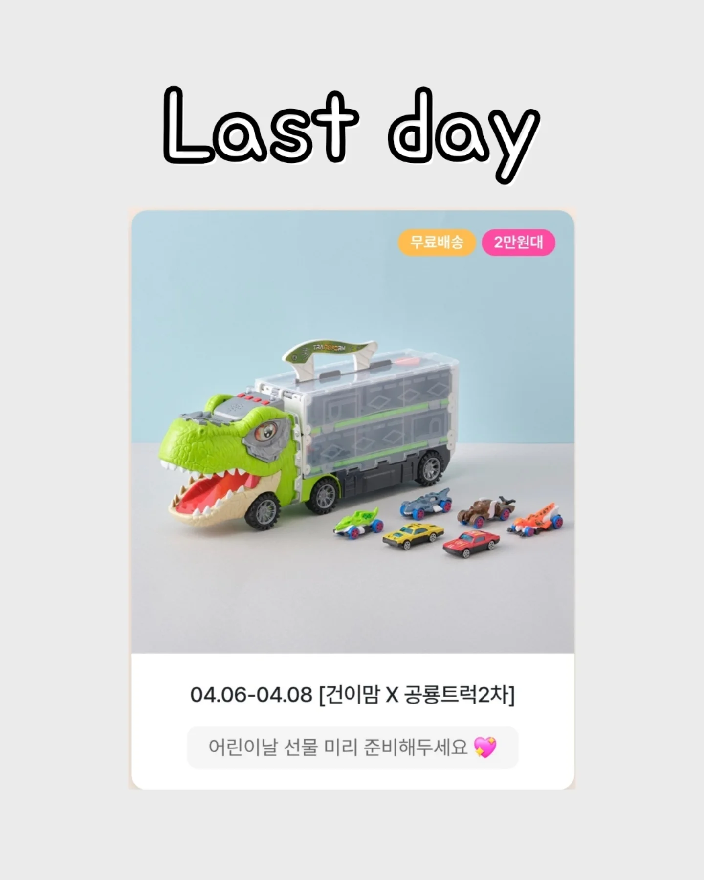 베어블리 공룡 트럭 공구geone.mom팔로워 9.6천|약 9시간 전베어블리 공룡 트럭오늘 오픈키즈 > 완구놀이|4/8 (수) 오픈AI가 정리한 정보예요. 실수가 있을 수 있어요원본 게시물인스타그램에서 보기#미니카#공룡장난감#어린이날선물출처 @geone.mom구매하러 가기