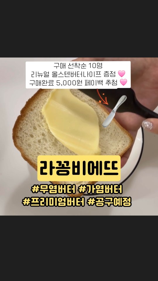 명품 버터 라꽁비에뜨 공구3minimom_팔로워 2.1만|1일 전명품 버터 라꽁비에뜨2일 후 오픈 예정식품 > 유제품|4/10 (금) ~ 4/13 (월)AI가 정리한 정보예요. 실수가 있을 수 있어요원본 게시물인스타그램에서 보기#공구#버터#명품버터#구매이벤트#라꽁비에뜨출처 @3minimom_구매하러 가기