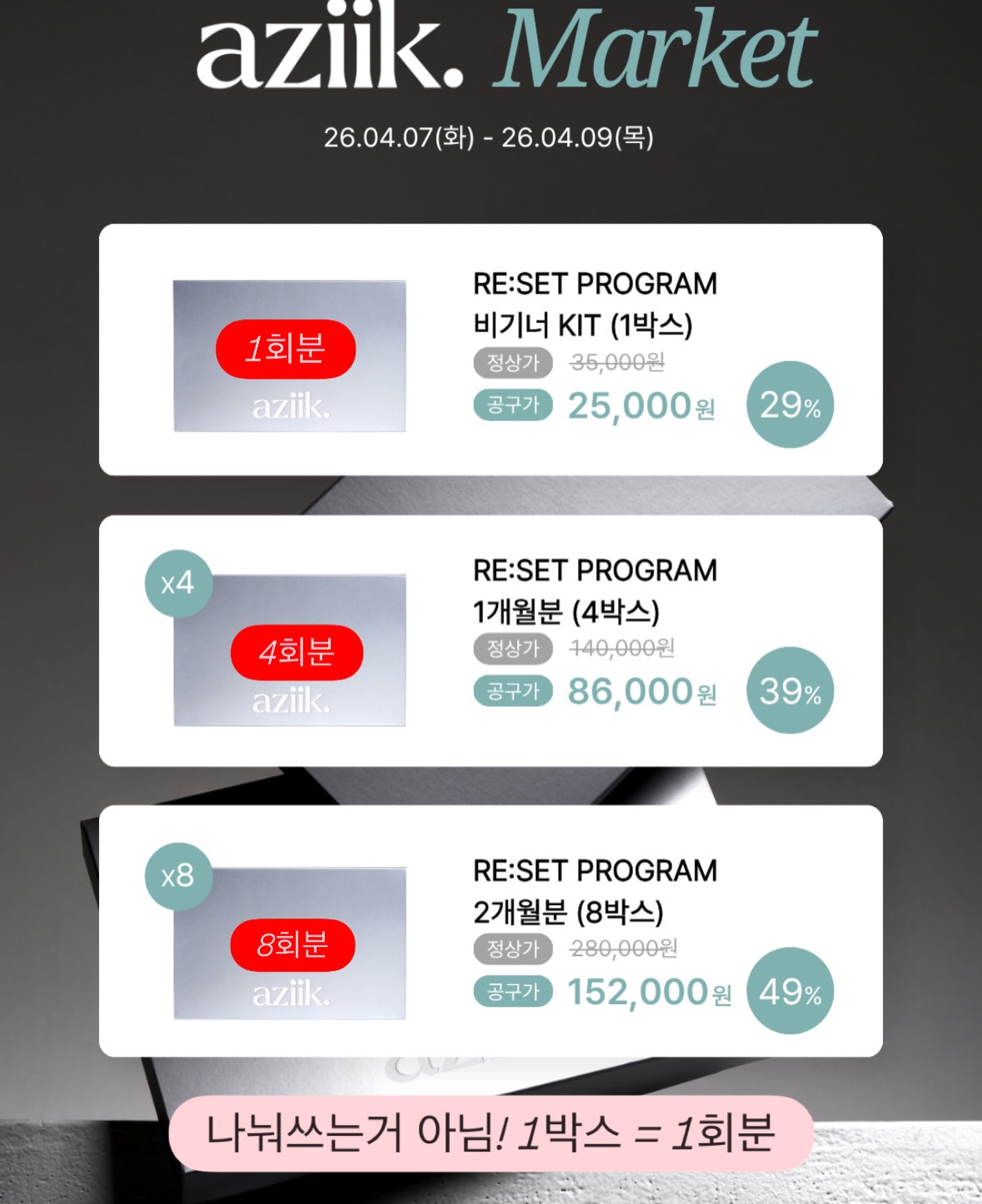 아지크 리ː셋 프로그램 공구zzang_mj4팔로워 9.6만|12일 전아지크 리ː셋 프로그램종료뷰티 > 스킨케어|4/7 (화) ~ 4/9 (목)AI가 정리한 정보예요. 실수가 있을 수 있어요원본 게시물인스타그램에서 보기#아지크#리셋프로그램#홈케어#피부#광채루틴출처 @zzang_mj4구매하러 가기