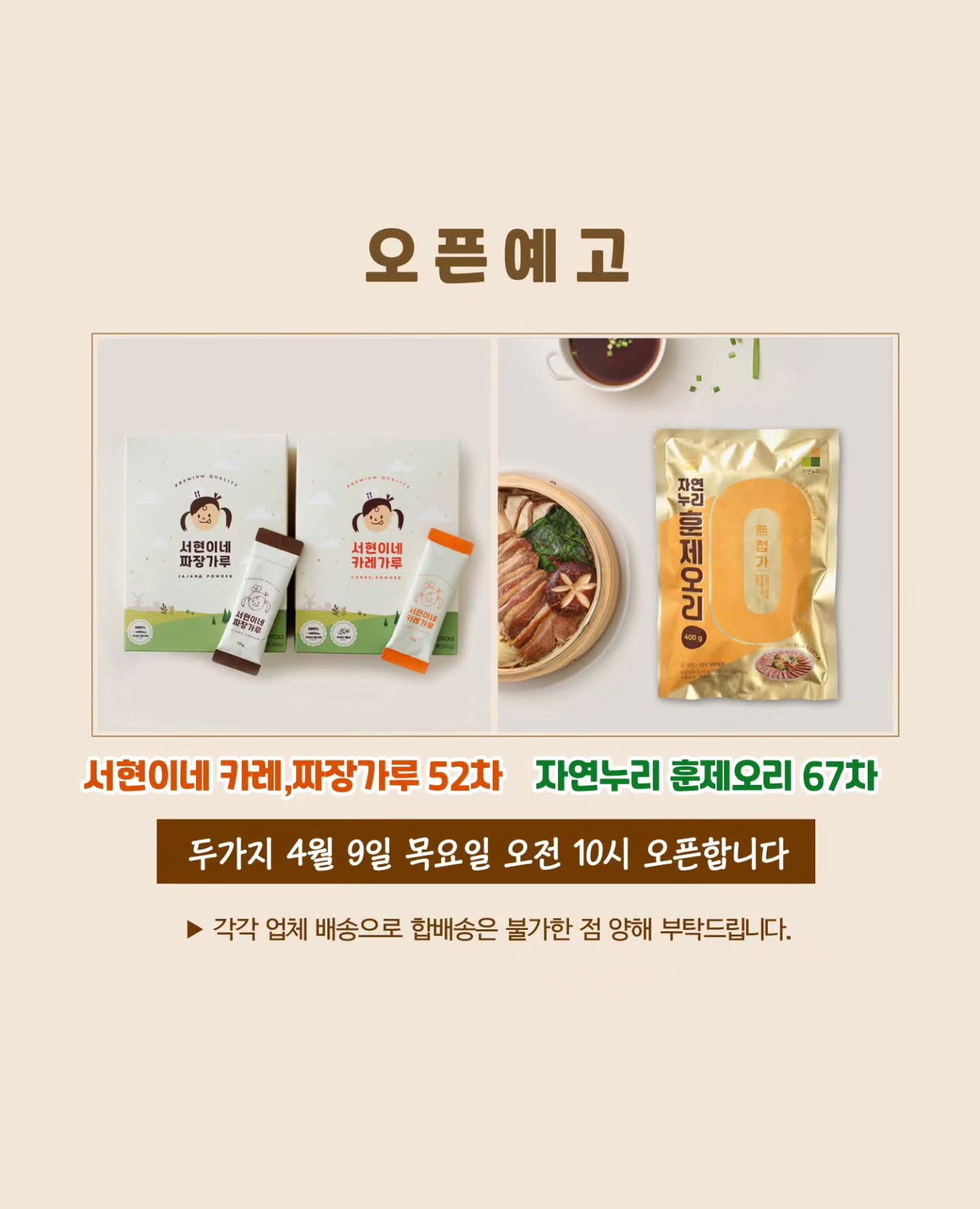 서현이네 카레, 짜장가루 52차 외 1건 공구onyoo0.0팔로워 17.9만|약 9시간 전공구 정보 (2건)서현이네 카레, 짜장가루 52차오늘 10시 오픈식품 > 간편식밀키트|4/9 (목) 오픈자연누리 훈제오리 67차오늘 10시 오픈식품 > 간편식밀키트|4/9 (목) 오픈AI가 정리한 정보예요. 실수가 있을 수 있어요원본 게시물인스타그램에서 보기#카레#유아식#짜장가루#건강식품#무항생제#훈제오리출처 @onyoo0.0구매하러 가기