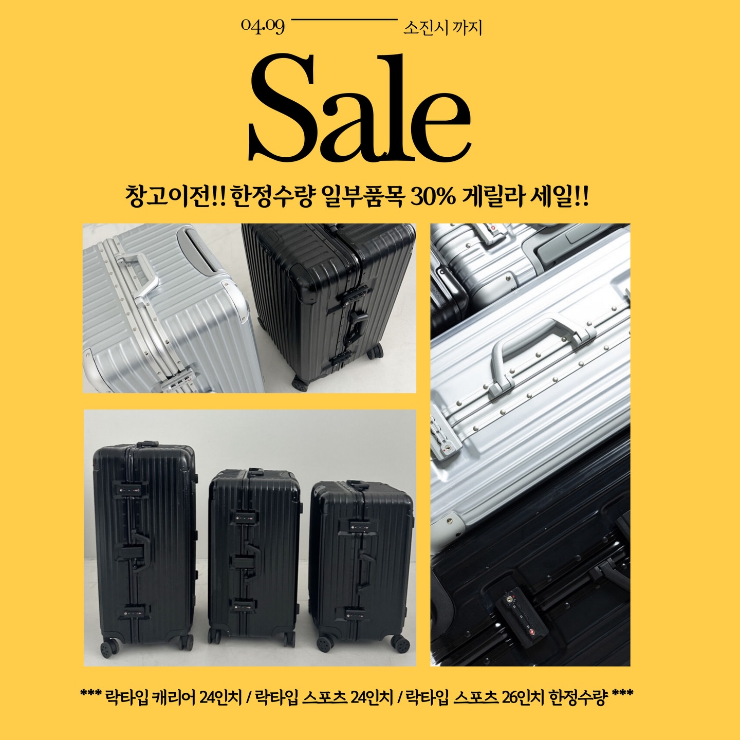 스포츠형 실버 24,26 / 블랙 24,26 외 1건 공구boutique____j팔로워 6.4만|10일 전공구 정보 (2건)스포츠형 실버 24,26 / 블랙 24,26종료패션 > 가방|4/9 (목) ~ 6/30 (화)락타입 기본형 실버24, 블랙24종료패션 > 가방|4/9 (목) ~ 6/30 (화)AI가 정리한 정보예요. 실수가 있을 수 있어요원본 게시물인스타그램에서 보기#캐리어#세일#여행#락타입#스포츠형#기본형출처 @boutique____j구매하러 가기