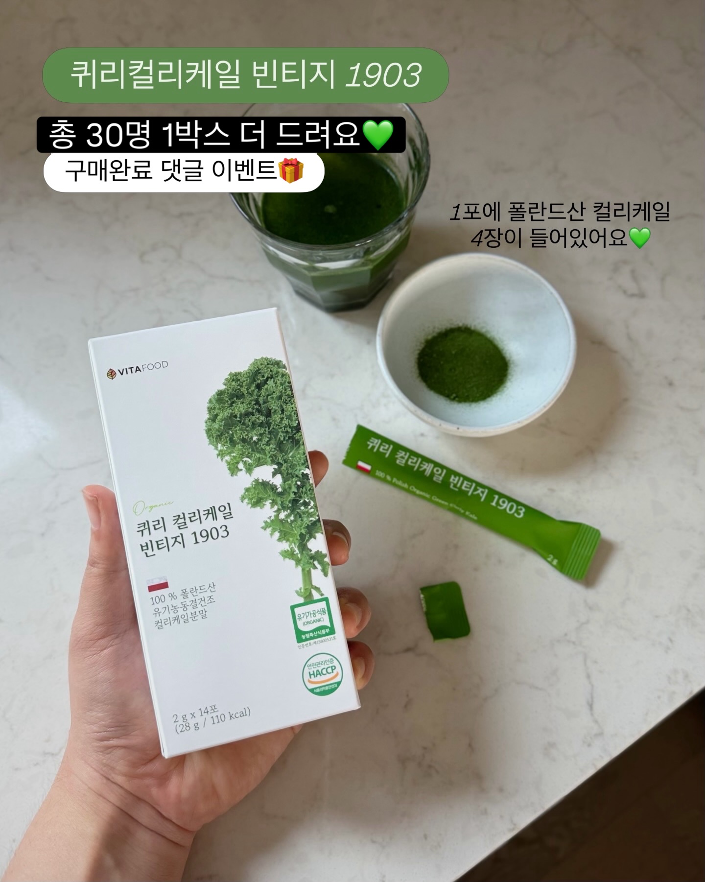 퀴리컬리케일 빈티지1903 공구wikiyaksa팔로워 24.2만|약 8시간 전퀴리컬리케일 빈티지1903오늘 10시 오픈식품 > 건강식품|4/15 (수) 오픈AI가 정리한 정보예요. 실수가 있을 수 있어요원본 게시물인스타그램에서 보기#유기농#건강식품#비타푸드#컬리케일#십자화과채소출처 @wikiyaksa구매하러 가기