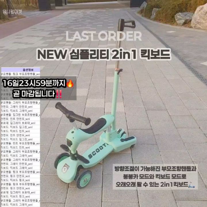 NEW 심플리티 2in1 킥보드 공구seonju0815팔로워 3.8만|4일 전NEW 심플리티 2in1 킥보드종료키즈 > 장난감/완구|4/15 (수) ~ 4/16 (목)AI가 정리한 정보예요. 실수가 있을 수 있어요원본 게시물인스타그램에서 보기#심플리티킥보드#킥보드#어린이날#붕붕카#부모조향핸들출처 @seonju0815구매하러 가기