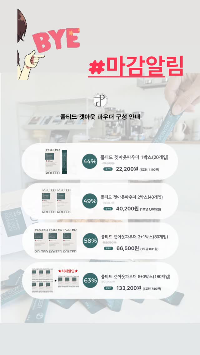 겟아웃 파우더 공구_blanc_beauty팔로워 1.5만|약 7시간 전겟아웃 파우더2일 전 오픈뷰티 > 기초|4/13 (월) ~ 4/16 (목)AI가 정리한 정보예요. 실수가 있을 수 있어요원본 게시물인스타그램에서 보기#다이어트#식단조절#겟아웃파우더출처 @_blanc_beauty구매하러 가기