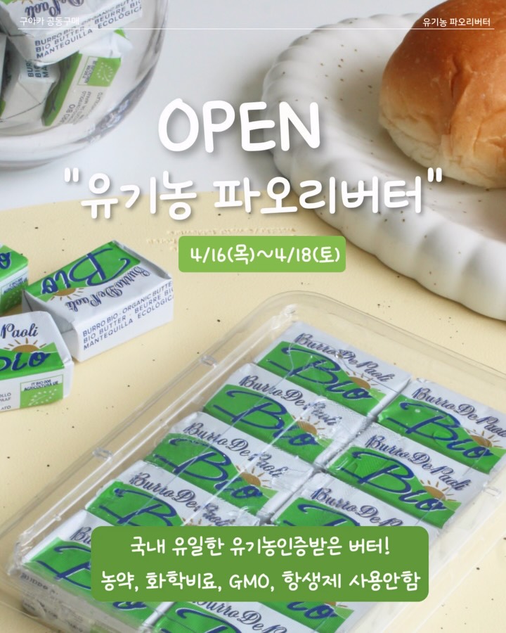파오리 무염 유기농 버터 공구cooaka__팔로워 21만|약 14시간 전파오리 무염 유기농 버터종료식품 > 유제품|4/13 (월) ~ 4/15 (수)AI가 정리한 정보예요. 실수가 있을 수 있어요원본 게시물인스타그램에서 보기#꿀템#버터#유기농#버터추천#유기농버터출처 @cooaka__구매하러 가기