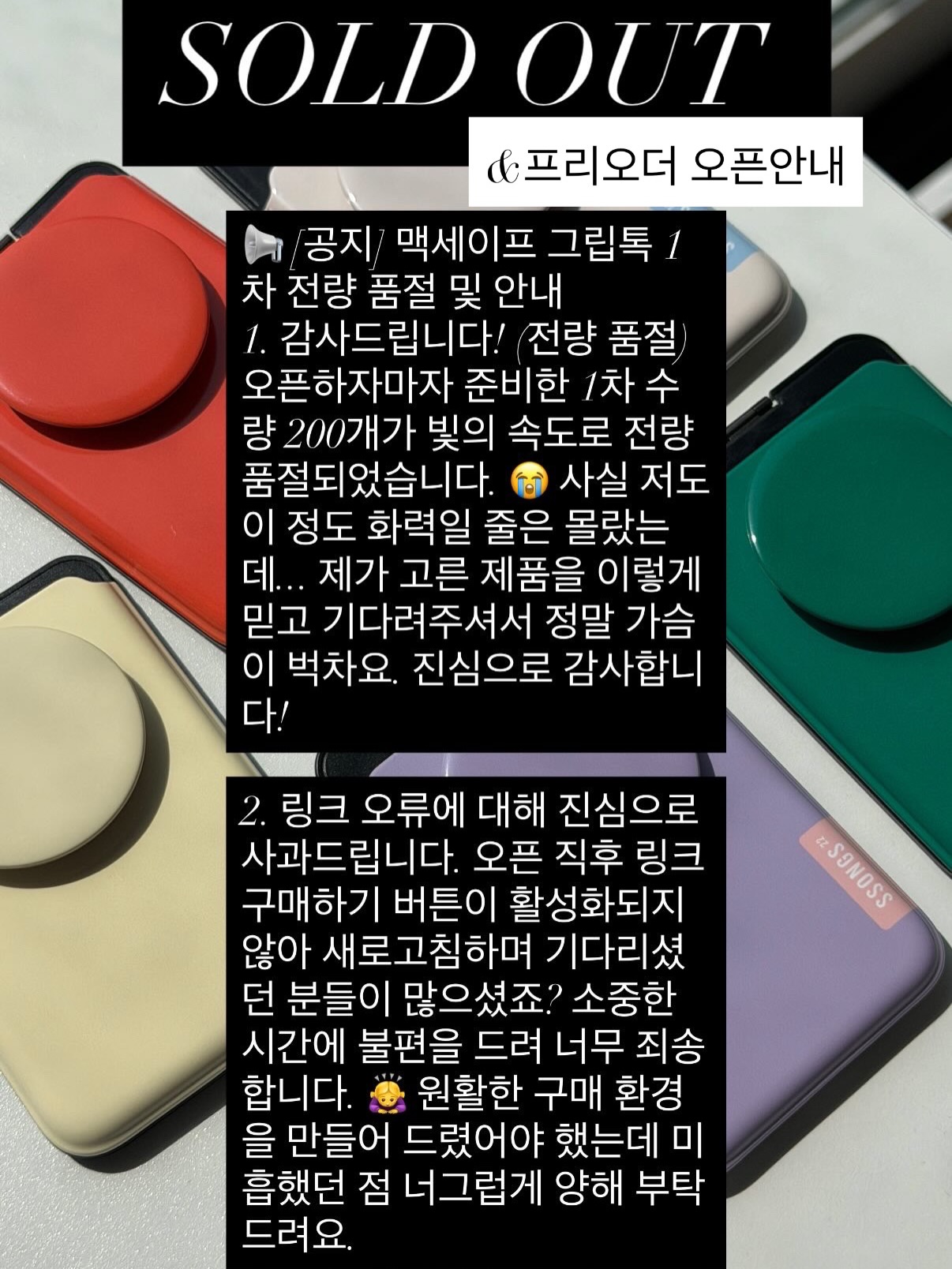 카드지갑 그립톡 공구doroom_ing팔로워 15.8만|약 11시간 전카드지갑 그립톡어제 오픈패션 > 액세서리|4/16 (목) 오픈AI가 정리한 정보예요. 실수가 있을 수 있어요원본 게시물인스타그램에서 보기#그립톡#인기컬러#카드지갑#프리오더#2차수량출처 @doroom_ing구매하러 가기