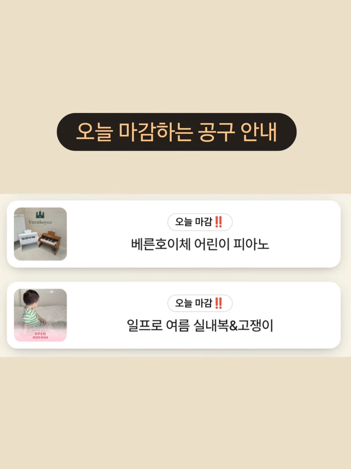 베른호이체 어린이피아노 외 1건 공구oni_mom__팔로워 6.7만|약 4시간 전공구 정보 (2건)베른호이체 어린이피아노오늘 오픈키즈 > 완구놀이|4/17 (금) 오픈일프로 여름 신상오늘 오픈패션 > 의류|4/17 (금) 오픈AI가 정리한 정보예요. 실수가 있을 수 있어요원본 게시물인스타그램에서 보기#선물#장난감#음악교육#베른호이체#어린이피아노#의류#디자인#일프로#국내생산#여름신상출처 @oni_mom__구매하러 가기
